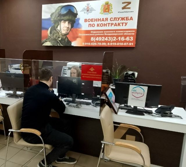 В здании администрации Петушинского муниципального округа (ул. Советская пл., д. 5) продолжает функционировать отделение военного комиссариата Петушинского района по отбору на военную службу по контракту.